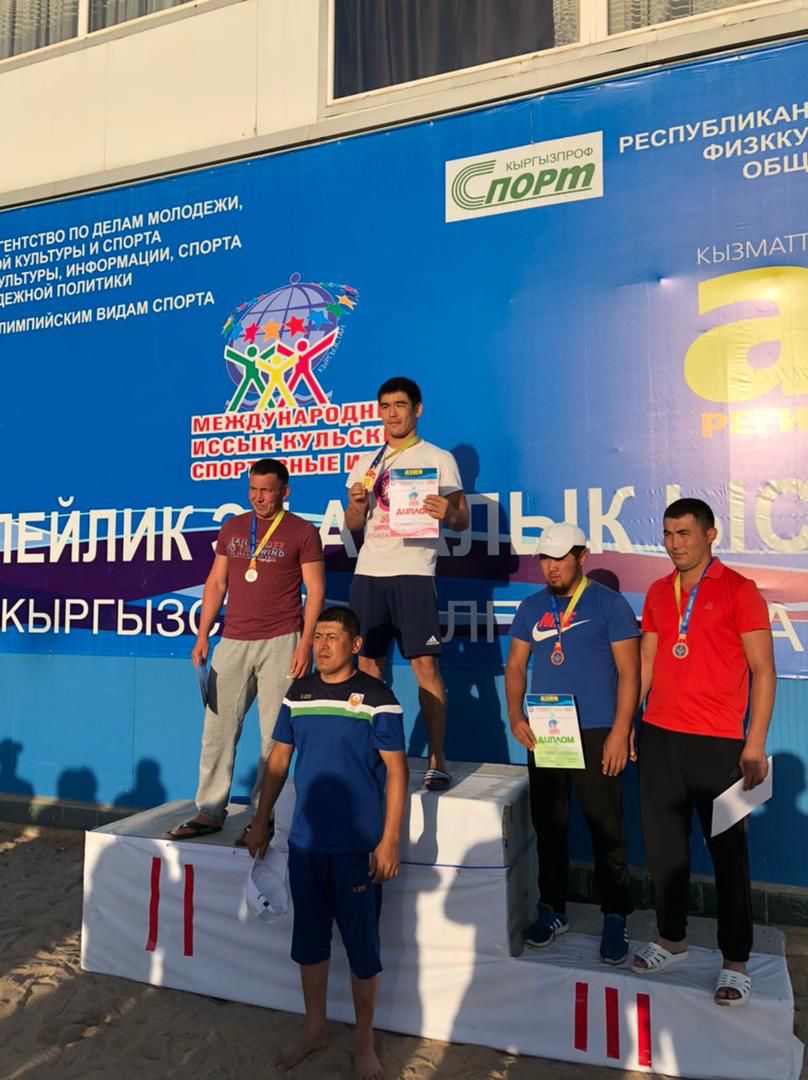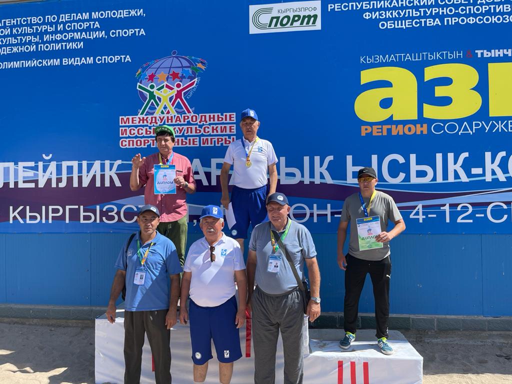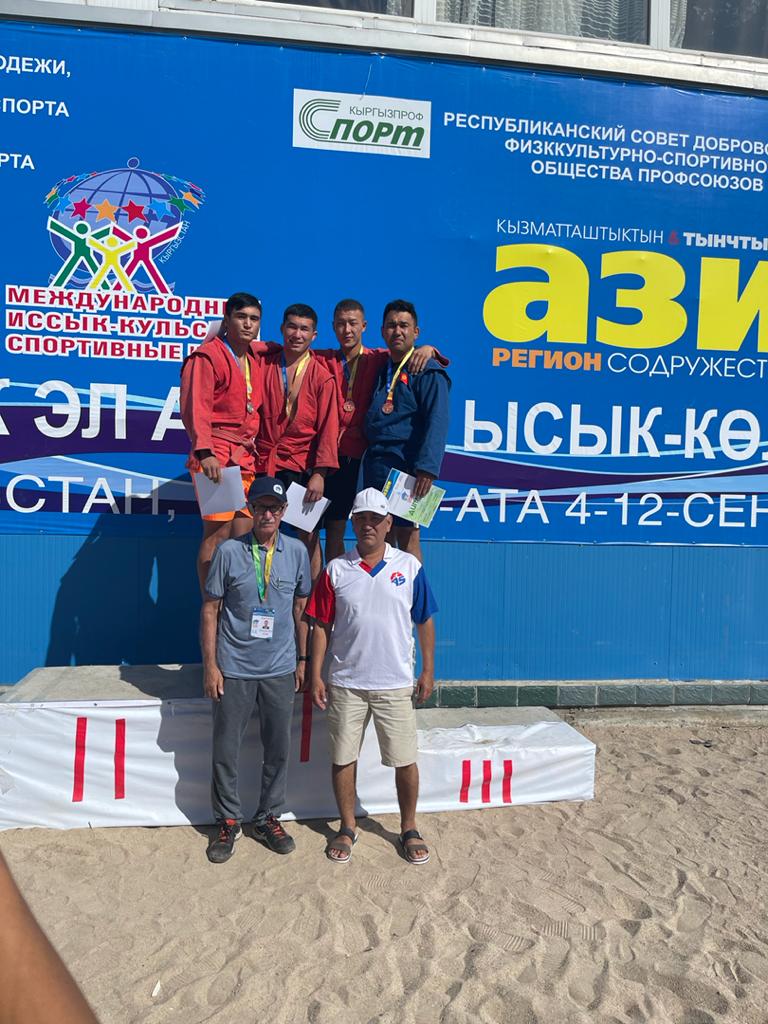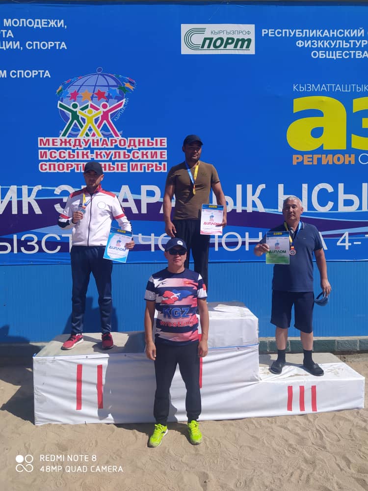 По ее данным, первое место по пляжной борьбе в весовой категории 90 килограммов занял Исхакбек Шопоков. По гиревому спорту среди мужчин до 40 лет в весовой категории до 78 килограммов второе место у Андрея Ливерко. Второе место по легкой атлетике среди мужчин старше 35 лет, бег по песку на 60 метров завоевал Эсен Чорданов. По дартсу среди мужчин третье место занял Максат Кольбаев. По плаванию среди мужчин старше 35 лет на дистанции 50 метров третье место занял Урмат Карыбеков, а также третье место по пляжному самбо в весовой категории 82 килограмма завоевал Адилет Жумабаев.