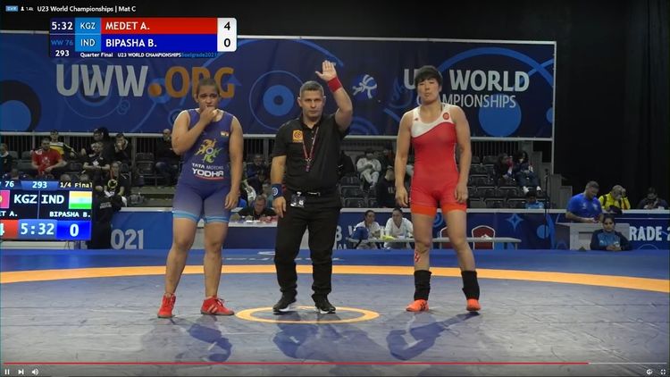 Затем ее соперницей стала спортсменка из Индии. Ее Айпери Медет кызы уложила на лопатки за 28 секунд.