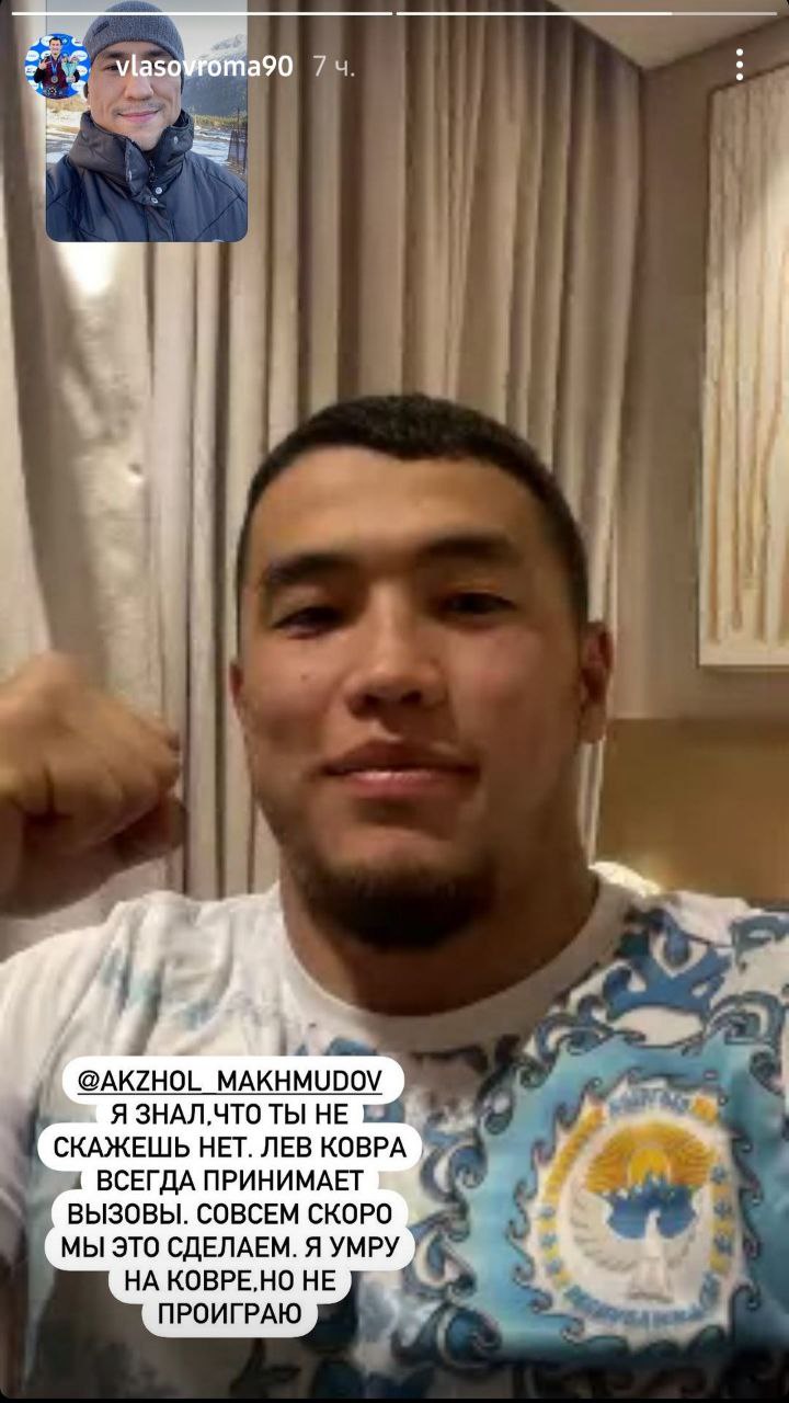 Борец греко-римского стиля Акжол Махмудов принял вызов двукратного олимпийского чемпиона Романа Власова. Об этом российский спортсмен написал на своей странице в Instagram.