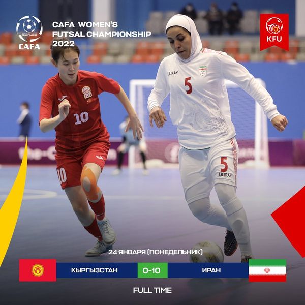 Встреча женских сборных по футзалу Кыргызстана и Ирана на CAFA Women’s Futsal Championship 2022 закончилась поражением отечественных футболисток со счетом 0:10. Матч состоялся сегодня в Душанбе.