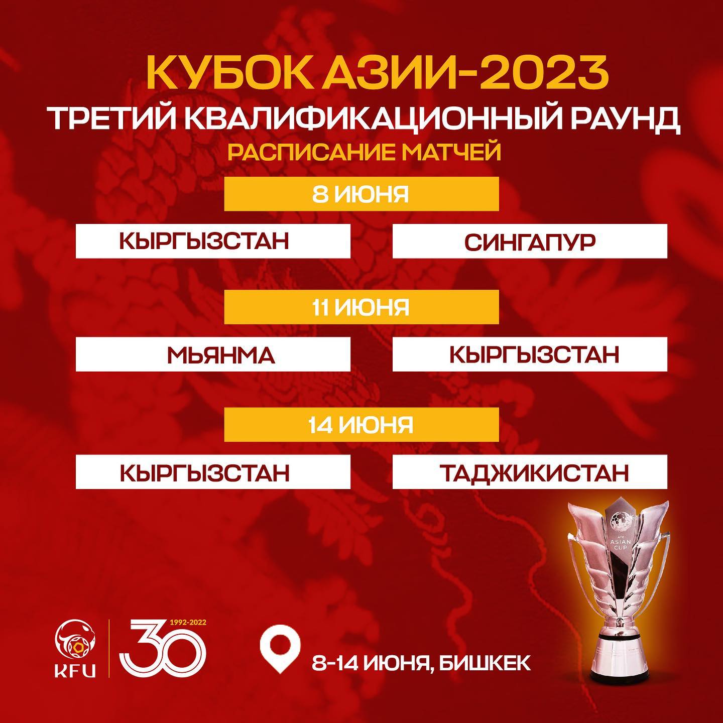 Сборная Кыргызстана возглавила группу F и сыграет с командами Сингапура, Мьянмы и Таджикистана.