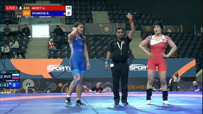 Кыргызстанка в весовой категории 76 килограммов выиграла у Кристины Шумовой из России — 8:0.