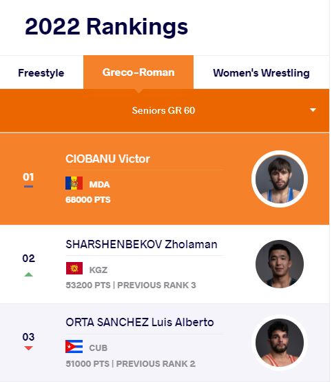 Жоламан Шаршенбеков, завоевавший бронзовую медаль на турнире Dan Kolov — Nikola Petrov в Болгарии, в греко-римском стиле (до 60 килограммов) поднялся с третьего на второе место.