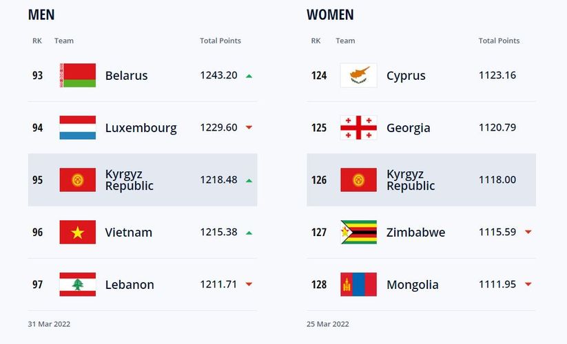 Cборная Кыргызстана по футболу занимает 95-е место в рейтинге ФИФА. Обновленный список опубликован на сайте Международной федерации.