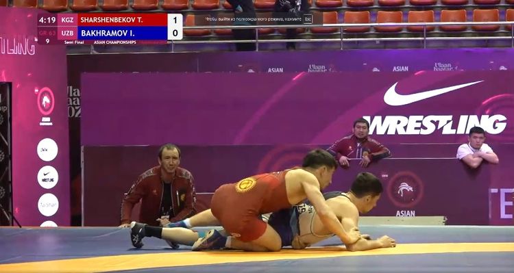 Борец греко-римского стиля Тынар Шаршенбеков в весовой категории до 63 килограммов вышел в финал чемпионата Азии. Прямую трансляцию соревнования можно посмотреть на сайте Объединенного мира борьбы.