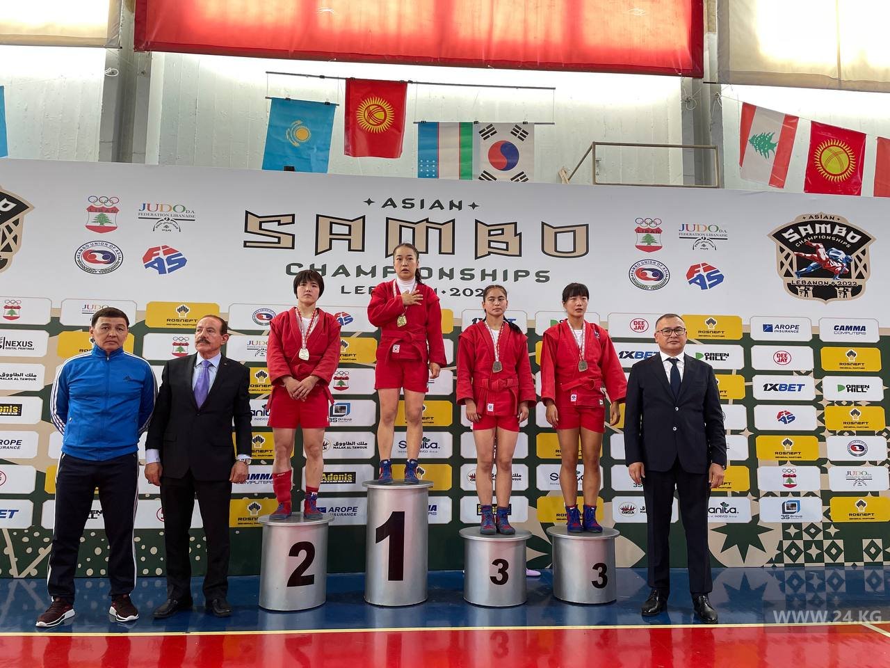 «Мираида Медетбек кызы стала первой чемпионкой по женскому боевому самбо. Дайыр Карыяев и Бекболсун Керимбеков взяли золото по боевому самбо. Чемпионкой Азии по спортивному самбо стала Самара Абдумалик кызы, в финале она победила действующую чемпионку мира из Казахстана. Адилет Кубанычбек уулу, Кимал Оболбеков и Артур Сансызбаев — взяли золото по спортивному самбо среди юношей и молодежи», — говорится в сообщении.