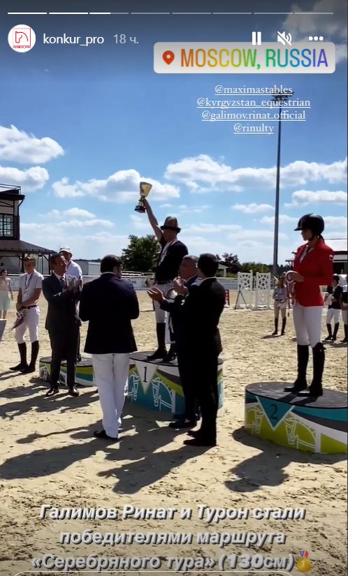 Отметим, ранее спортсмены из Кыргызстана заняли третье место в командном первенстве на Евразийских играх по конкуру. В первый день соревнований Ринат Галимов на Туроне стал первым на маршруте 120 сантиметров.