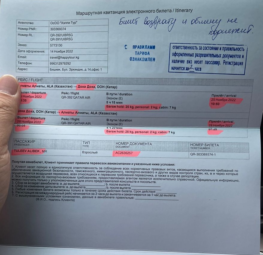 По его словам, он вместе с друзьями приобрел билеты в Катар, забронировал номер в гостинице и билеты на матч, зарегистрировался в приложении «Hayya». Однако улететь кыргызстанцам так и не удалось.