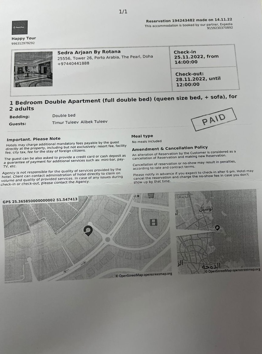 «Мы зарегистрировались еще в сентябре на получение карты. Как правило, ее выдают в течение двух-трех дней, но нас рассматривали два месяца. Мы планировали попасть на матчи 25, 26 и 27 ноября. Но мне одобрили карту только 28 ноября, как издевательство. Я потратил $4 тысячи 300, их мне никто не вернет. Мы обращались в посольство Катара в КР, но там развели руками, сказав, что не владеют информацией. Посольство КР тоже не смогло помочь. Выяснилось, что правительство Катара рассматривает на выдачу карты «Hayya» более богатые страны, а такие, как наша, отфутболивает», — сказал Алибек Тулеев.