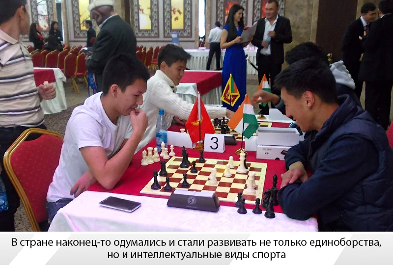 Курс на воспитание трудолюбивых патриотов взяла Кыргызская шахматная федерация. Но так было не всегда. Года четыре назад о шахматистах почти не было слышно. Лишь иногда они всплывали, чтобы поскандалить. В федерации шла борьба за власть. Шахматистам повезло. Их объединение возглавил молодой, энергичный и амбициозный Милан Турпанов.