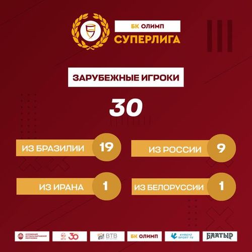 Так, в чемпионате КР сыграют 19 легионеров из Бразилии, один из Ирана, девять из России и один из Беларуси.