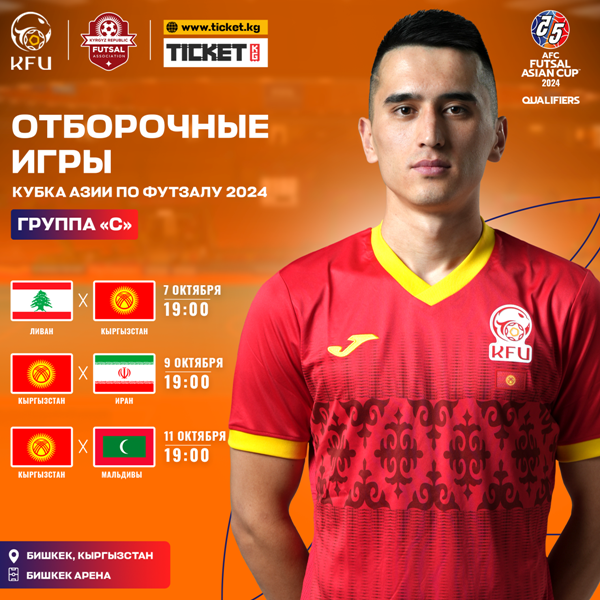 В рамках отборочных игр в группе С за выход в финальную стадию азиатского первенства национальная сборная КР по футзалу сыграет с командами Ирана, Ливана и Мальдивских островов.