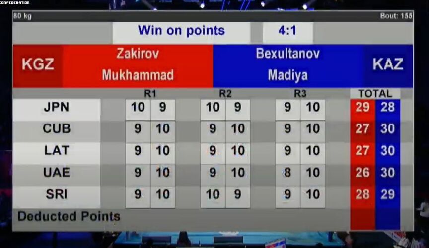 В весовой категории до 80 килограммов Мухаммадазиз Закиров встречался со спортсменом из Казахстана Мадияром Бексултановым. Соперник кыргызстанца оказался сильнее.