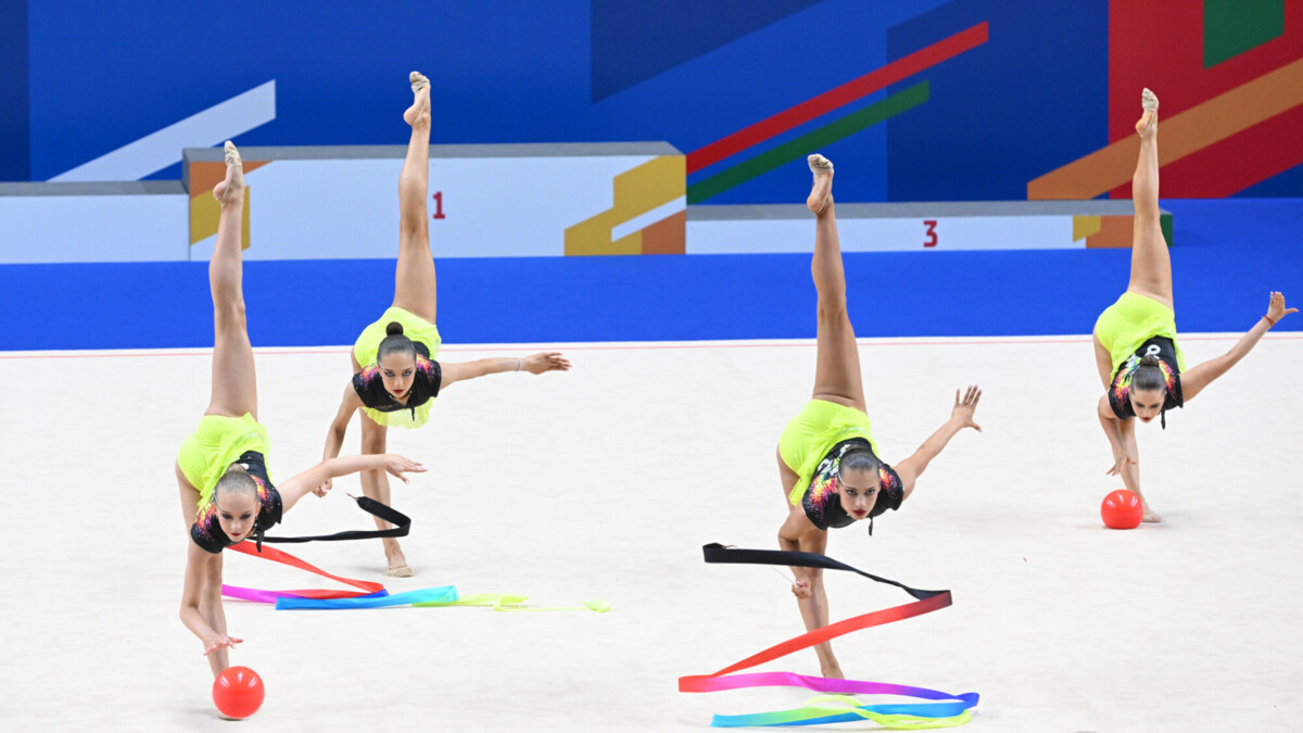 Ранее сборная «Небесной грации» одержала победу в многоборье на групповых упражнениях на Играх БРИКС. В сумме за два упражнения команда получила 68,450 балла. Второе место заняла другая команда России (63,600). Третьей стала сборная Узбекистана (59,500).