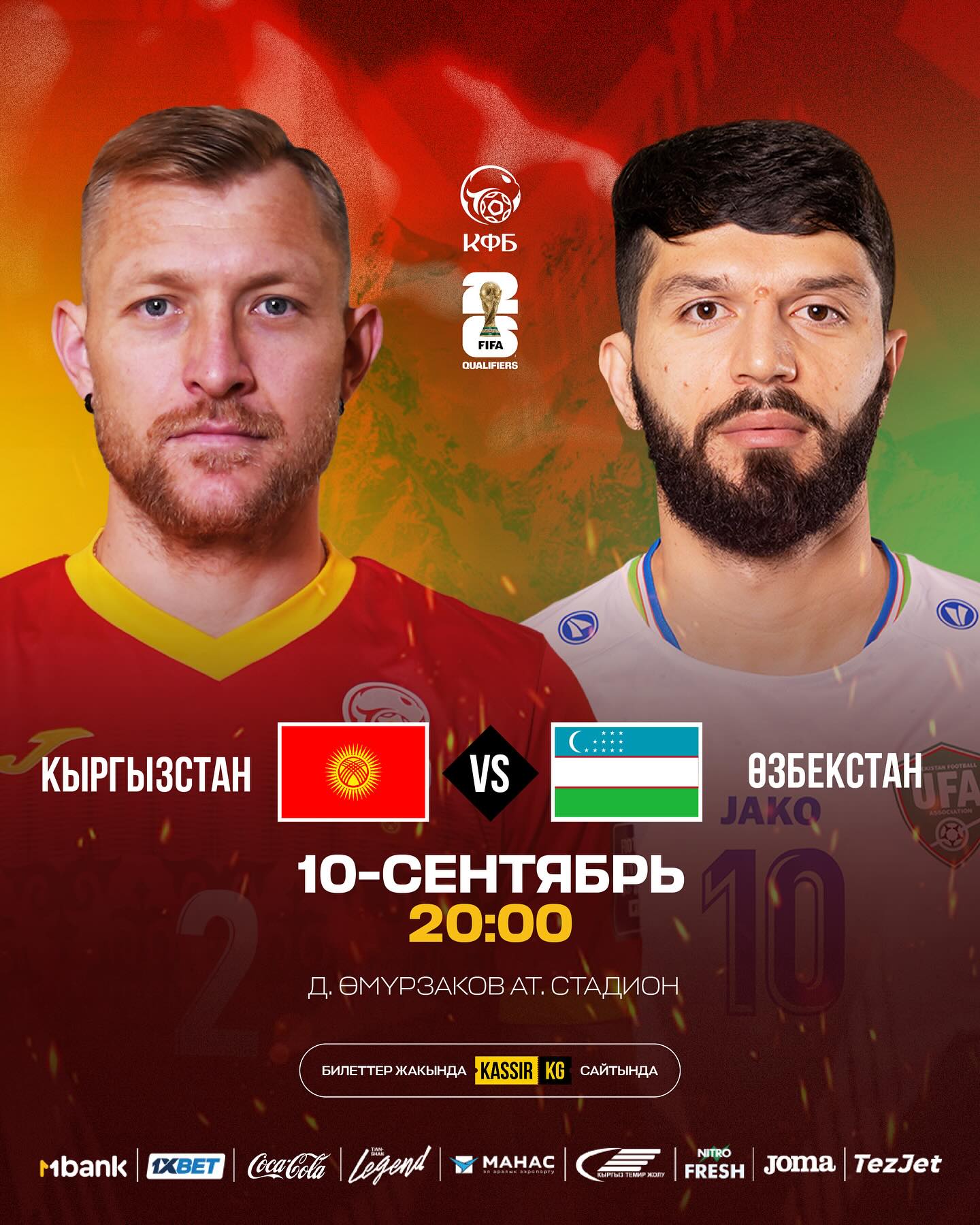 10 сентября в рамках второго тура третьего раунда отборочных игр чемпионата мира 2026 года состоится матч национальной сборной Кыргызстана против Узбекистана. Об этом сообщает Кыргызский футбольный союз.