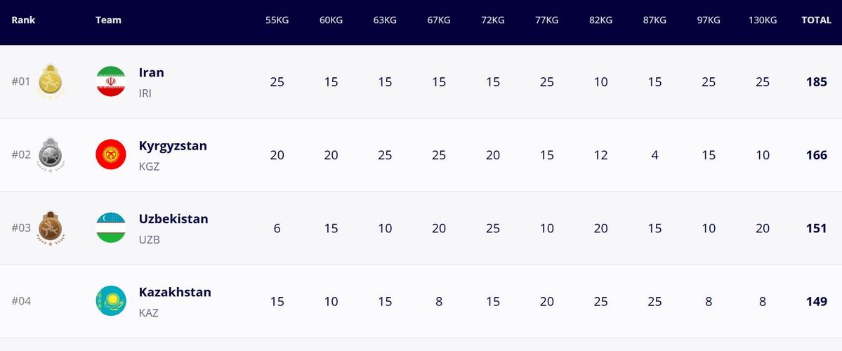 На первом месте оказались иранцы, на третьем — спортсмены из Узбекистана.
