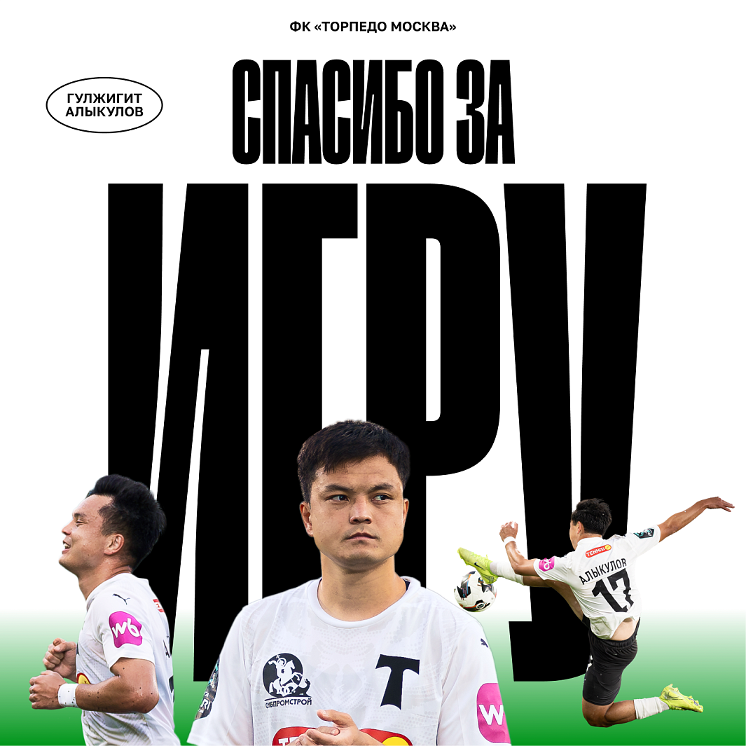 «Футбольный клуб «Торпедо Москва» и 24-летний полузащитник сборной Кыргызстана Гулжигит Алыкулов достигли договоренности о расторжении контракта по соглашению сторон.