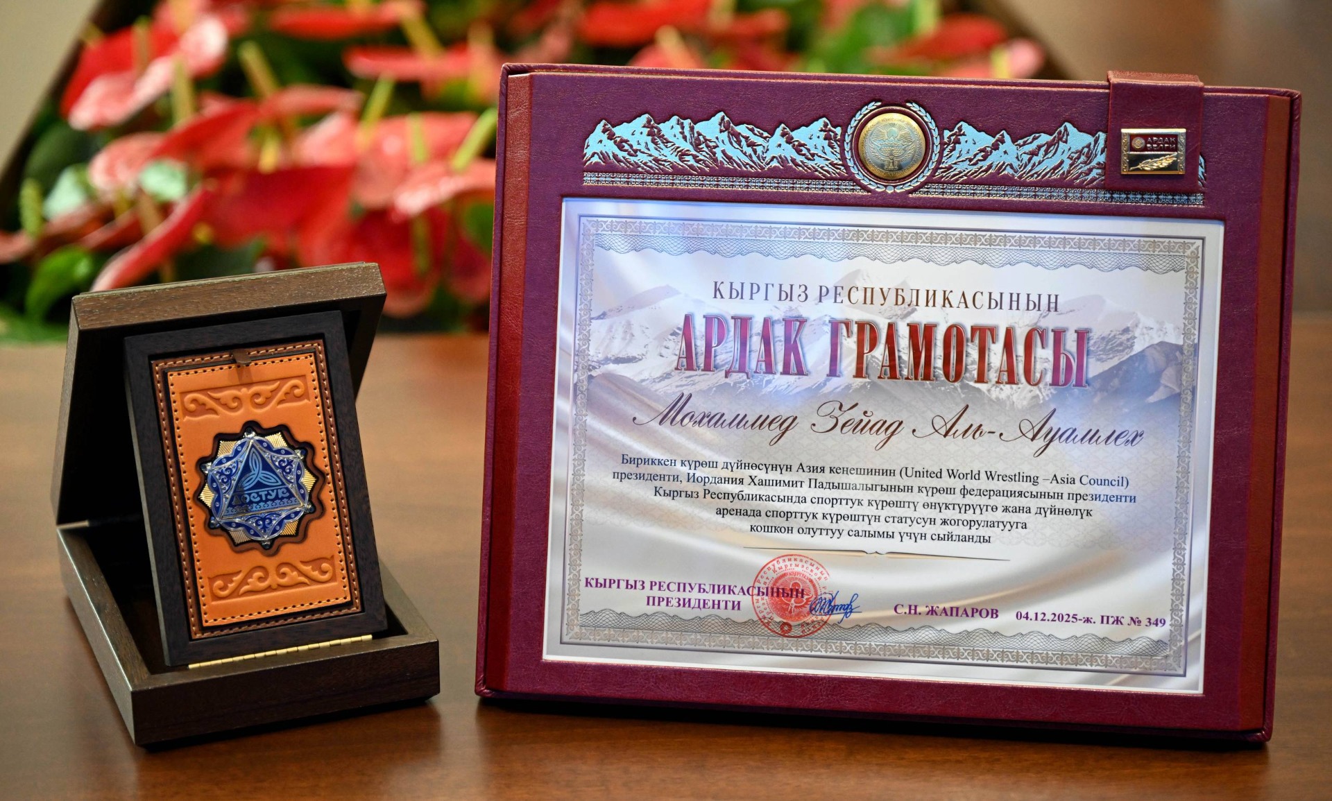 В завершение встречи президент Садыр Жапаров наградил руководителей United World Wrestling: Ненаду Лаловичу был вручен орден «Достук», а Мохаммеду Аль-Авамлеху — Почетная грамота КР за значительный вклад в развитие спортивной борьбы в Кыргызстане и повышение статуса спортивной борьбы на мировой арене. Ненад Лалович, в свою очередь, вручил Садыру Жапарову орден UWW.