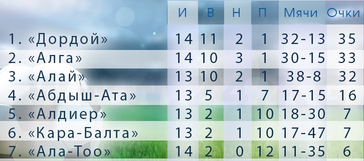 Как сообщается, после этой победы «Дордой» (35 очков) занял первое место в турнирной таблице. Следом идут «Алга» (33 очка) и «Алай» (32).