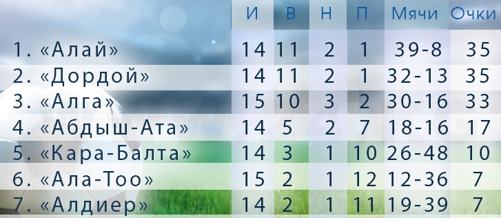 Как сообщается, «Алай» (35 очков) вышел на первое место в турнирной таблице, «Алга» (33 очка) опустилась на третье.