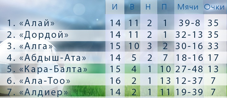 По ее данным, накануне состоялся один поединок национального первенства. «Кара-Балта» в Бишкеке со счетом 1:0 одолела нарынскую команду «Ала-Тоо». Благодаря этой победе у нее стало 13 очков в активе, она увеличила отрыв от «Ала-Тоо» до шести очков.