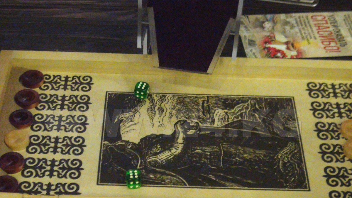 Наконец, игроки уселись за доски. Те – не простые, какие можно недорого купить на рынке, а настоящее произведение искусства! На одних покрытие войлочное, другие разрисованы по мотивам эпоса «Манас». Красота!