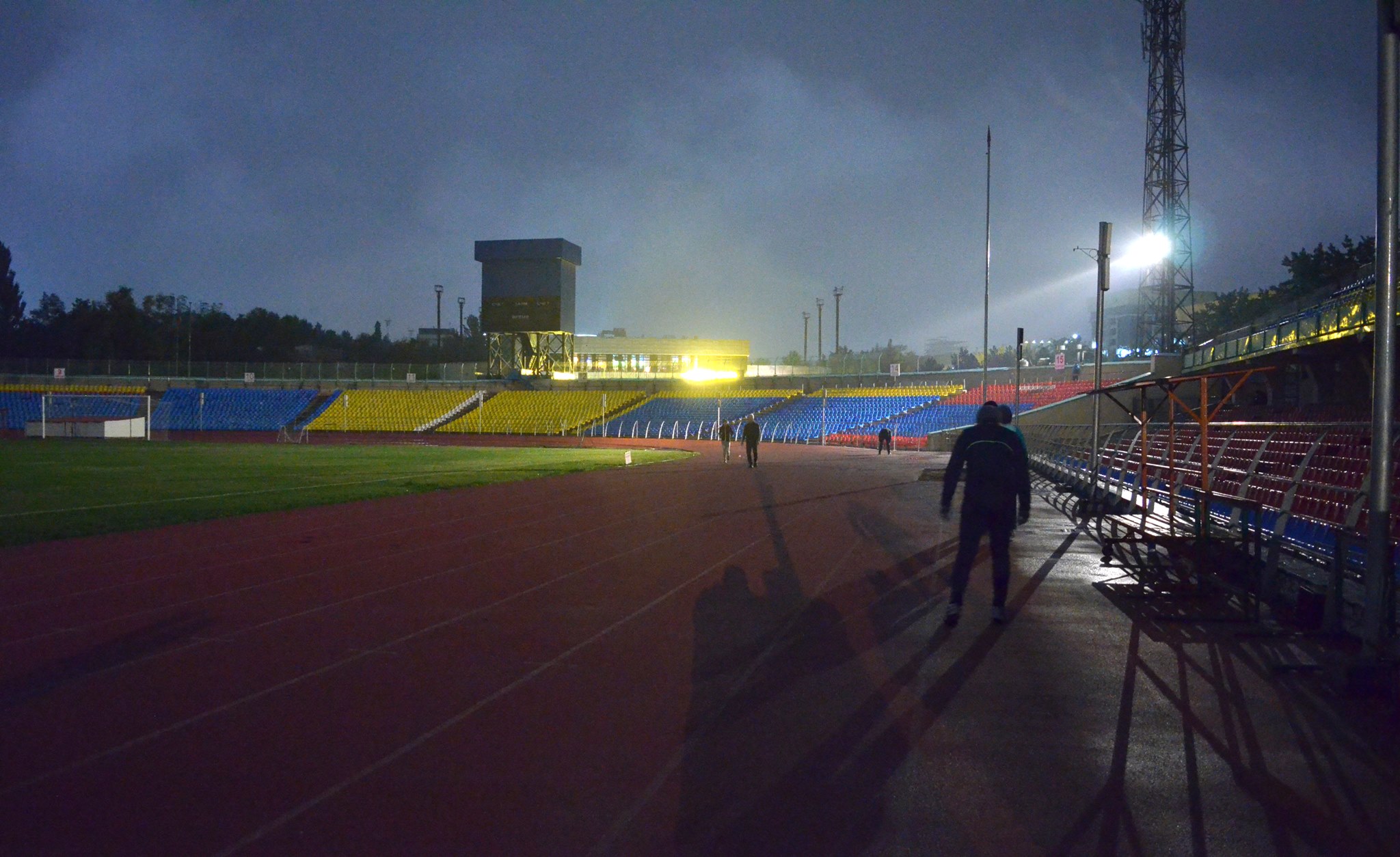 Глава ГАМФКиС Канат Аманкулов проверил освещение арены и поручил Управлению спортивными сооружениями и спортивного обеспечения усилить его с западной стороны и оснастить дополнительными осветительными приборами восточную трибуну.