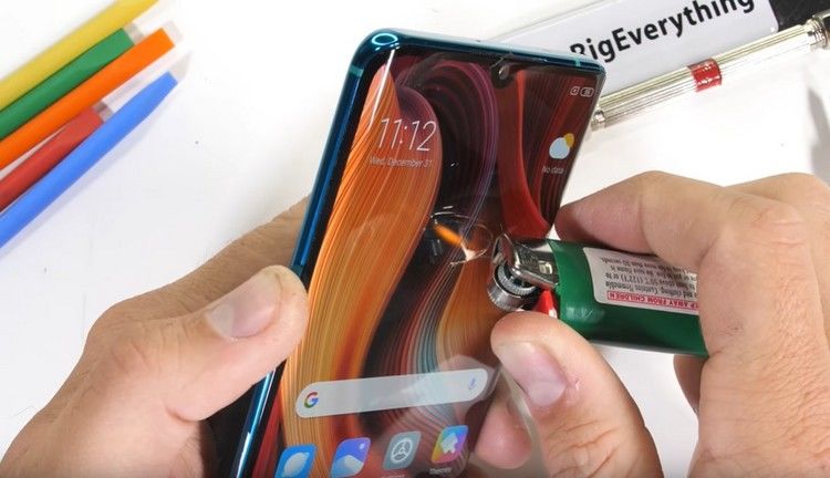 «Испытание огнем» девайс выдержал стоически, и дисплей вернулся к нормальному состоянию после 30 секунд нагревания бытовой зажигалкой.