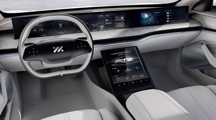 Приборная панель автомобиля представляет собой широкий дисплей диагональю 39 дюймов. Предусмотрен автопилот: процессорный модуль Nvidia Xavier обрабатывает информацию с 15 камер, 12 ультразвуковых и пятимиллиметровых радаров.