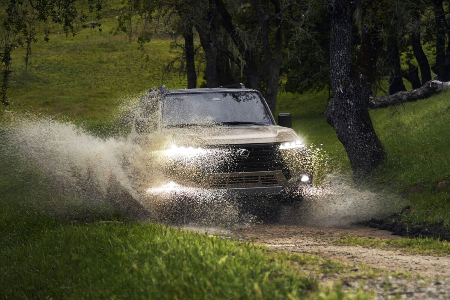 На фото передняя часть GX нового поколения, снятого в движении, частично скрыта брызгами из лужи. Тем не менее видно, что автопроизводитель отказался от большого количества хромированных деталей в отделке. Кузовные панели автомобиля стали более угловатыми. На опубликованном ранее снимке видно, что дверь багажника GX получила поперечную светящуюся полосу.