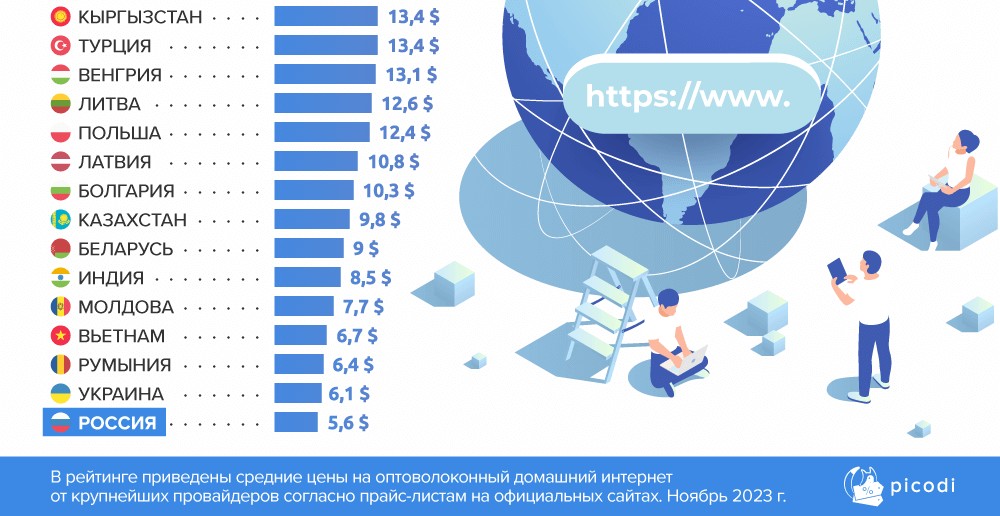 Аналитики Picodi посчитали, как много жители той или иной страны платят за домашний интернет. Выяснилось, в какой стране услуга самая дешевая и где самая дорогая.