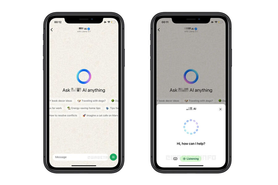 WABetaInfo пишет, что обновление с выделенным голосовым чатом с нейросетью Meta AI направлено на упрощение передачи сложной информации или запросов с помощью голоса. Кроме того, это упростит взаимодействие с нейросетью в тех ситуациях, когда печатать неудобно или невозможно.