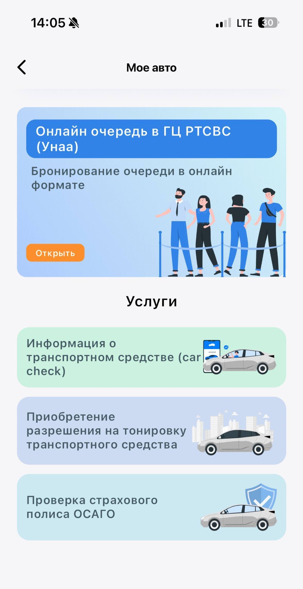 Расширение бронирования. Онлайн-бронирование очереди теперь доступно не только для центров обслуживания населения (ЦОН), но и для Государственного центра регистрации транспортных средств и водительского состава (ГЦ РТСВС, бывшее «Унаа») и «Кадастра».