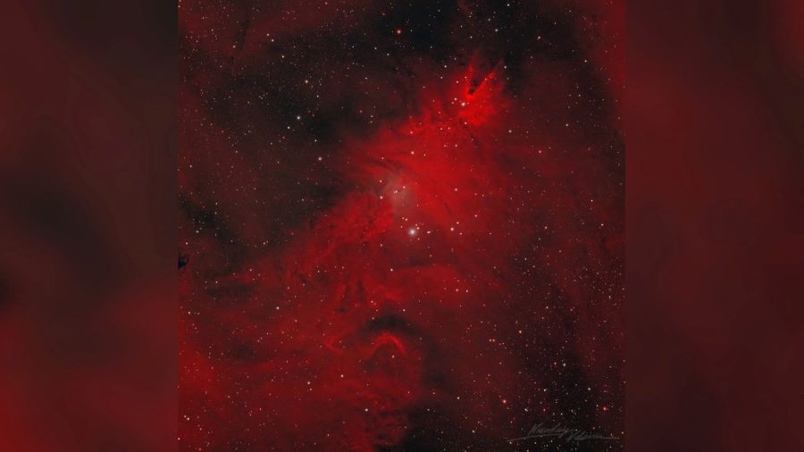 Она включает в себя Коническую туманность (форма маленькой перевернутой елки вверху кадра) и туманность «Лисий мех» в середине этого объекта.