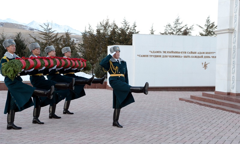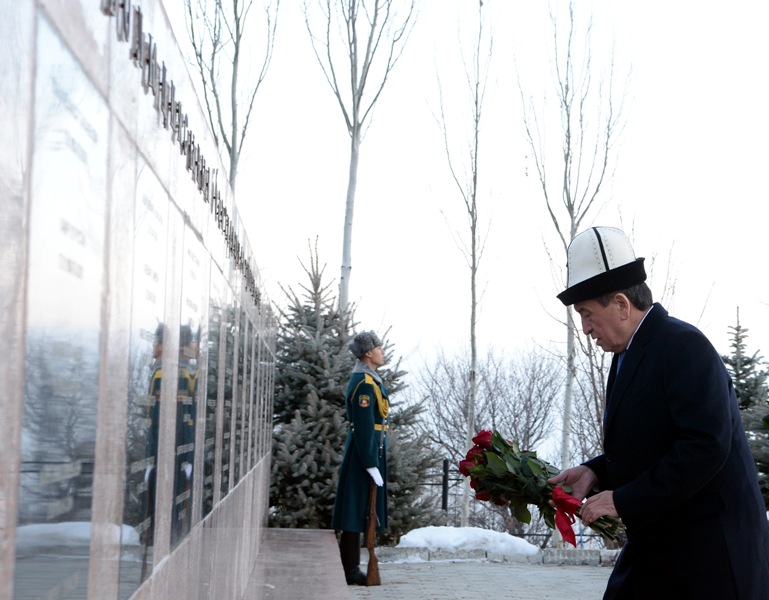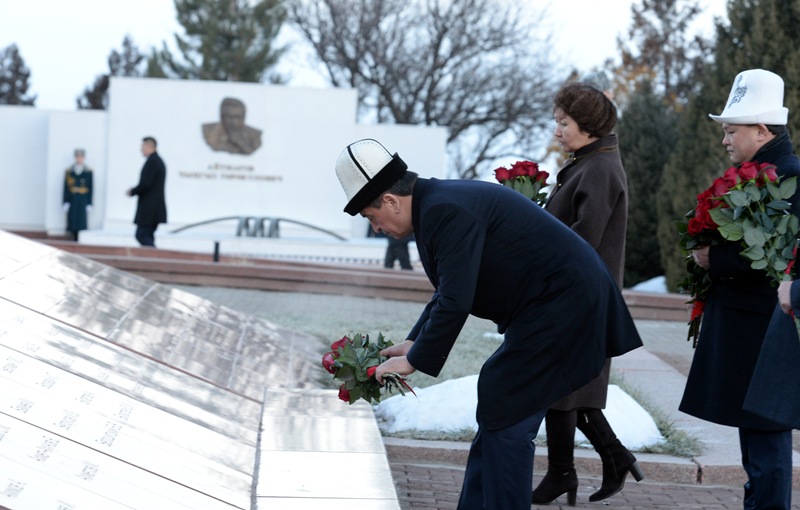 Затем Сооронбай Жээнбеков возложил цветы к памятнику жертвам политических репрессий, монументу памяти погибших в ходе событий 1916 года и мемориалу памяти погибших в Апрельской народной революции 2010-го.