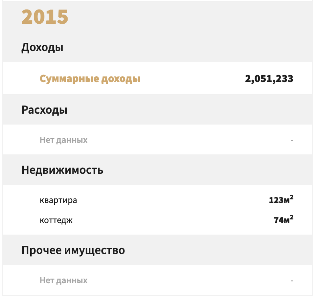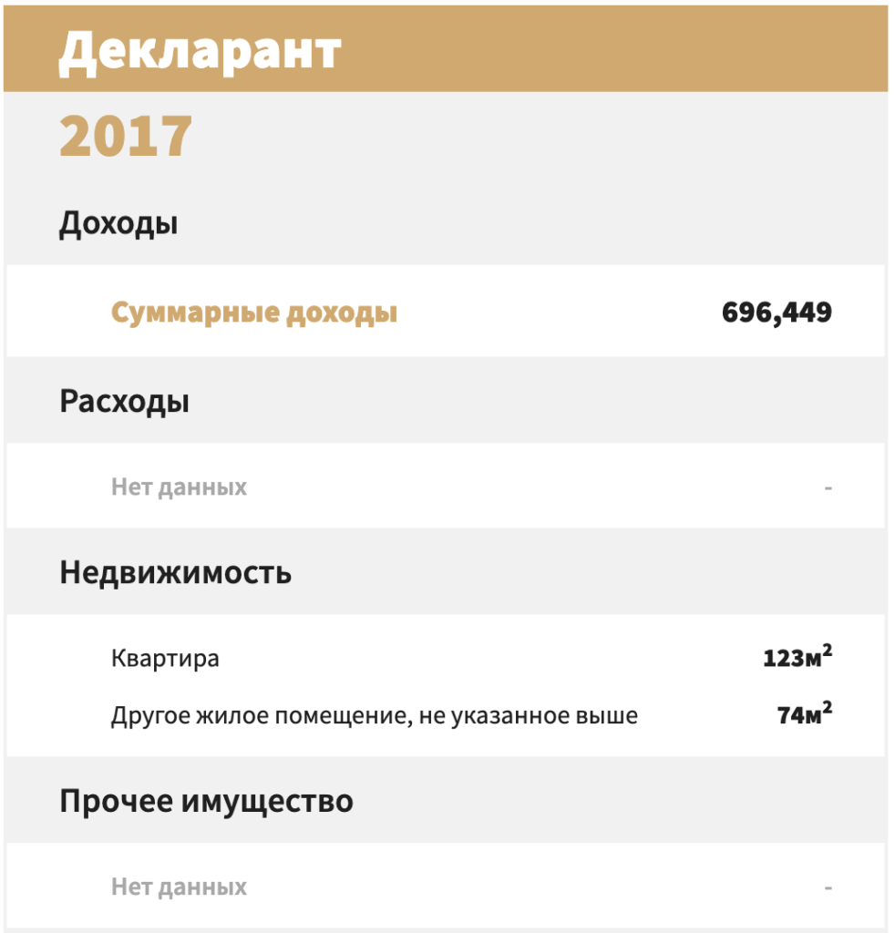 Журналисты изучили сведения о доходах и имуществе, которые парламентарий сдавала в Налоговую службу, за три года (2015, 2016 и 2017-й). И обнаружили практически пустые декларации.