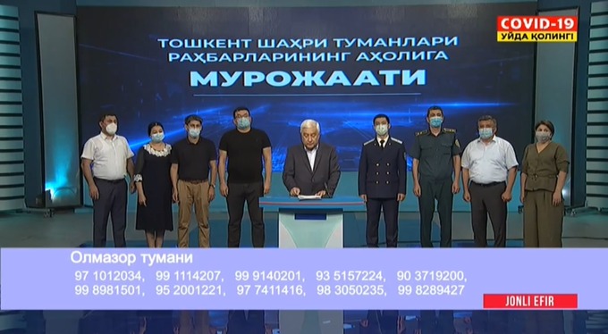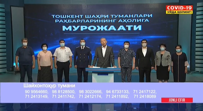 Хокимы всех 11 районов Ташкента выступили с обращением к жителям города и попросили прощения за недостаточную работу, проделанную в борьбе с коронавирусом. Обращение транслировалось в прямом эфире узбекского телеканала «Оилавий», передает «Газета.uz».