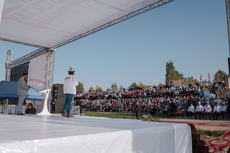 Жители Чуйской области встречают кандидатов от партии «Мекеним Кыргызстан». Агиткараван политического объединения до этого побывал в Нарынской и Иссык-Кульской областях. Традиционно звучат теплые слова поддержки в адрес партийцев.