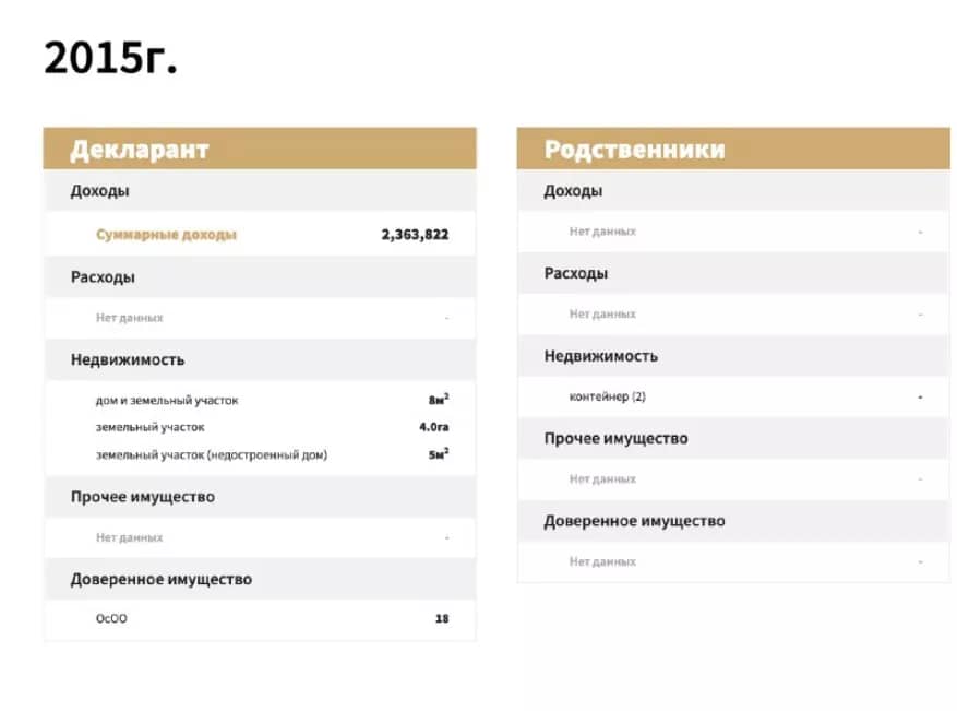 Ни одно из вышеперечисленных трех ОсОО не указано в декларациях чиновника и его близкого родственника, которым, как правило, является супруга или супруг.
