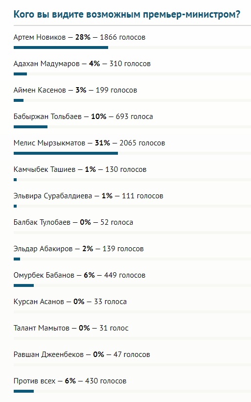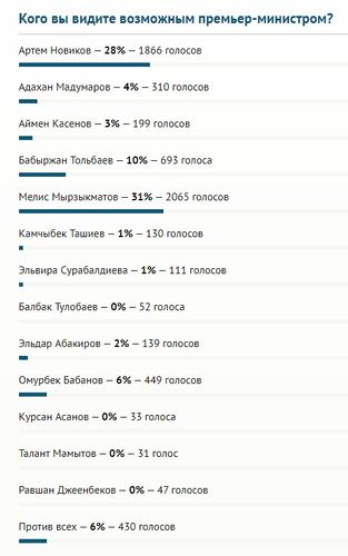 Большинство читателей 24-kg.com хотят видеть на посту премьера Мелиса Мырзакматова