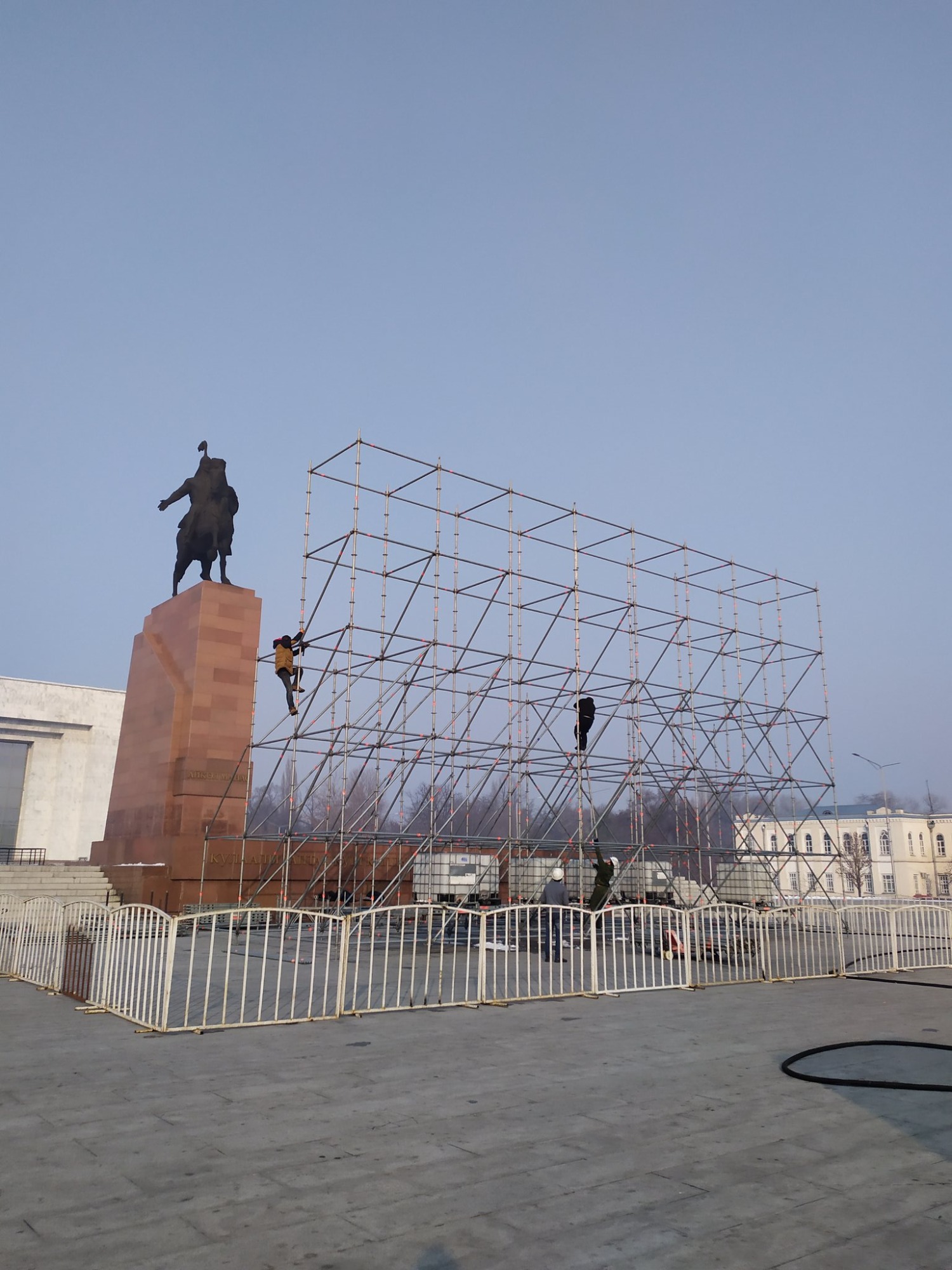 Сейчас на площади устанавливают конструкцию для этого экрана.