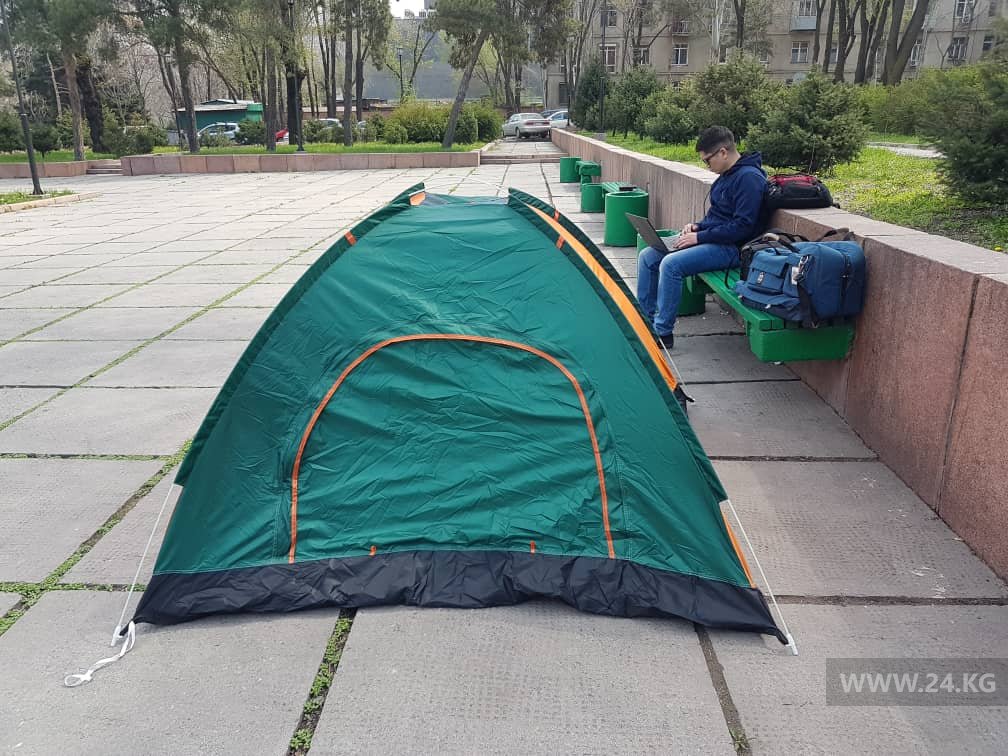 В Бишкеке протестующие третий день у ЦИК члены партий, не прошедших в городской кенеш, несмотря на запрет администрации Свердловского района, все-таки установили палатку.