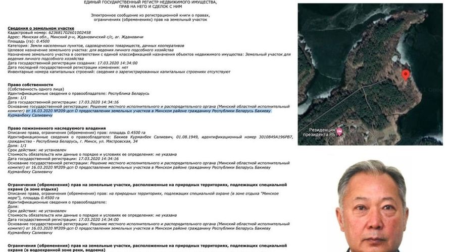 В соцсетях появилась фотография электронного сообщения Единого государственного регистра недвижимого имущества Республики Беларусь на имя бывшего президента Кыргызстана Курманбека Бакиева, свергнутого в результате госпереворота 7 апреля 2010 года.
