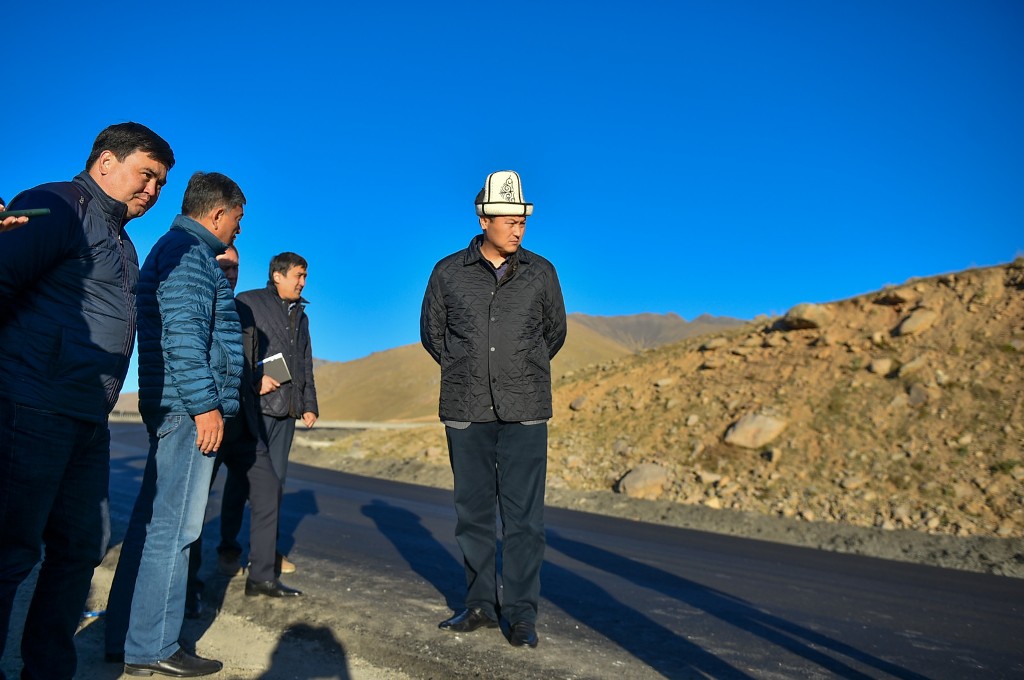 Улукбек Марипов проинспектировал ход ремонтных работ на участке автодороги Бишкек — Ош с южной стороны перевала Тоо-Ашуу. Об этом сообщает пресс-служба кабмина.