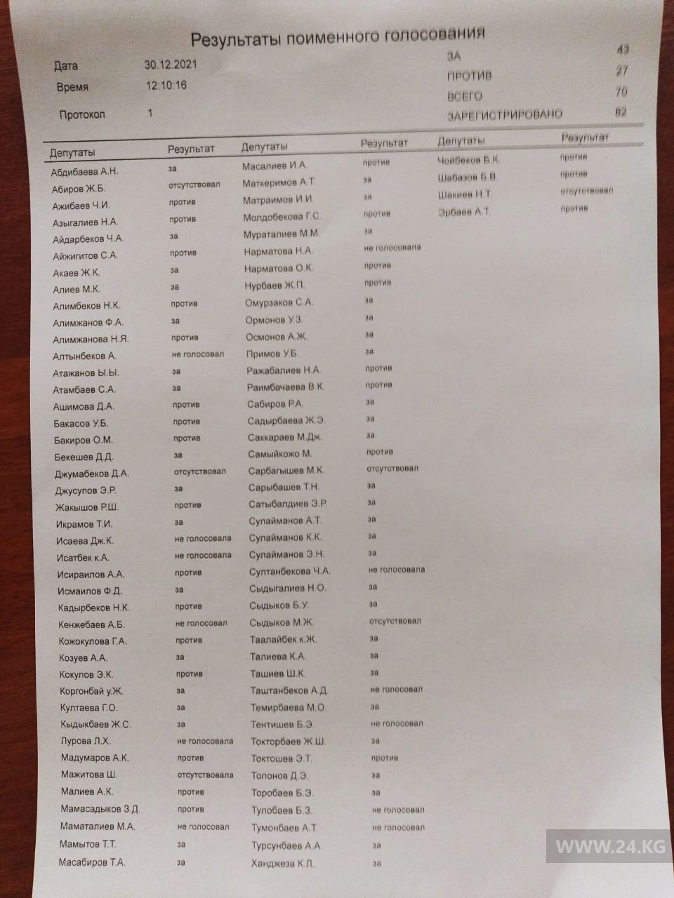 Депутаты не смогли с первого раза принять предложенную структуру парламента. За решение депутатской комиссии проголосовали только 43 народных избранника, против − 27.