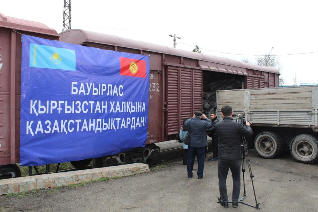 Церемония передачи гуманитарного груза прошла на станции «Бишкек-1» с участием министра сельского хозяйства Аскарбека Джаныбекова и посла Казахстана Рапиля Жошыбаева.