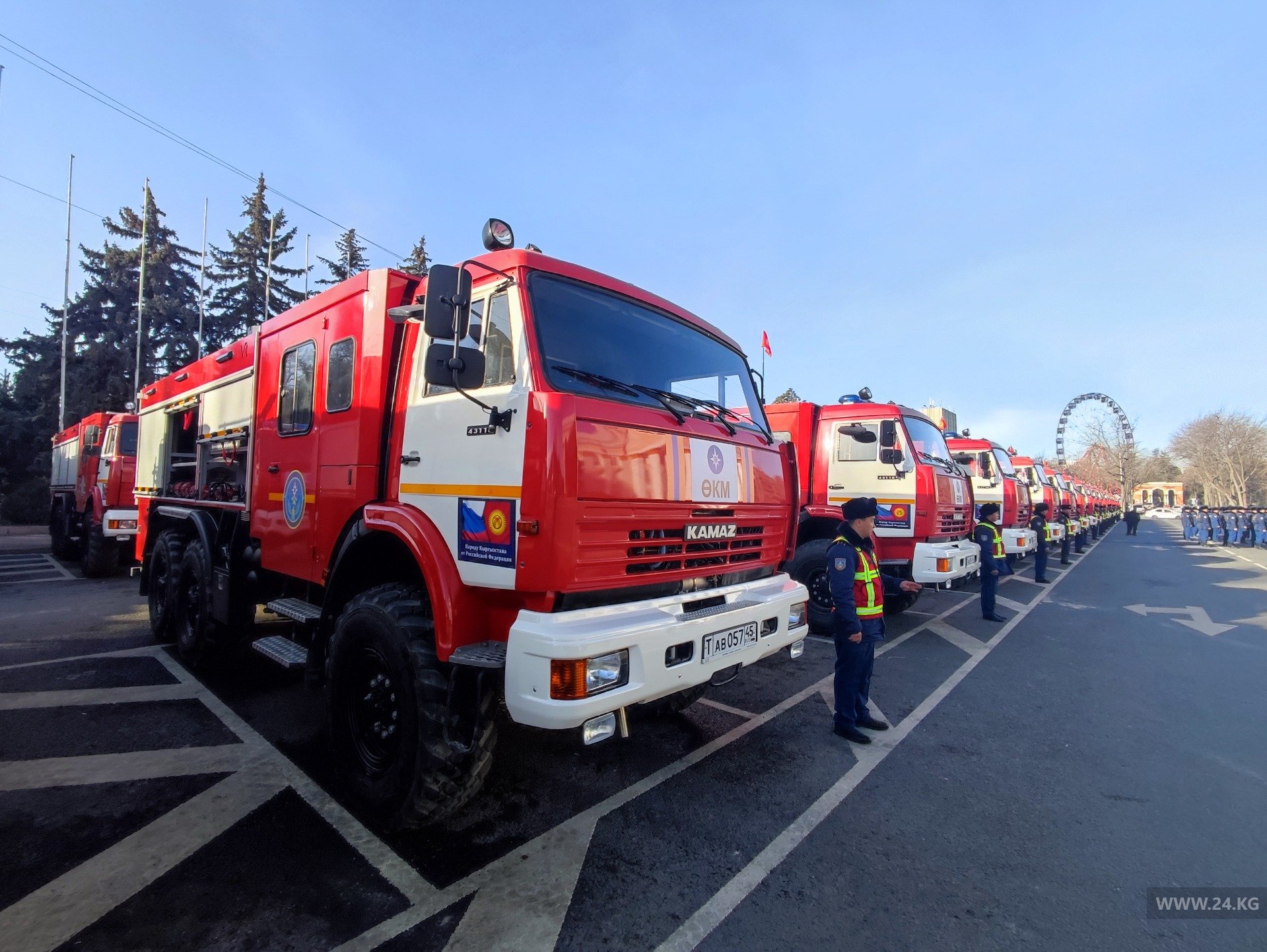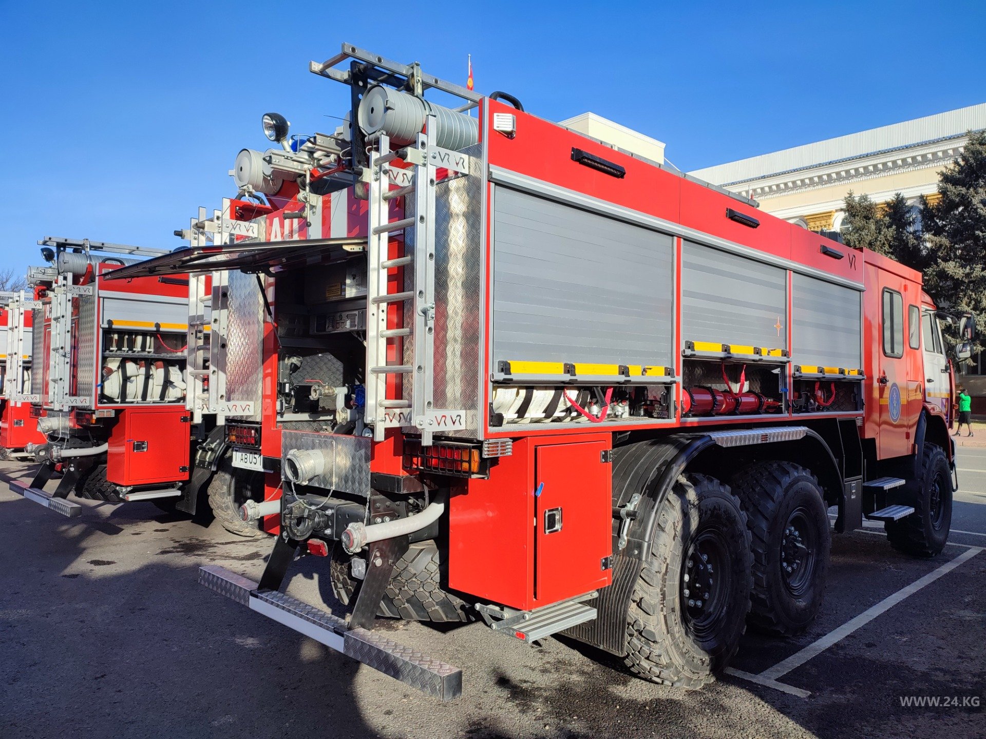 Россия передала Кыргызстану 40 новых пожарных машин. Церемония передачи спецтехники состоялась в Бишкеке на площади имени Усубалиева с участием председателя кабмина Акылбека Жапарова, министра по чрезвычайным ситуациям Бообека Ажикеева и министра гражданской обороны, чрезвычайных ситуаций и ликвидации последствий стихийных бедствий России Александра Куренкова.