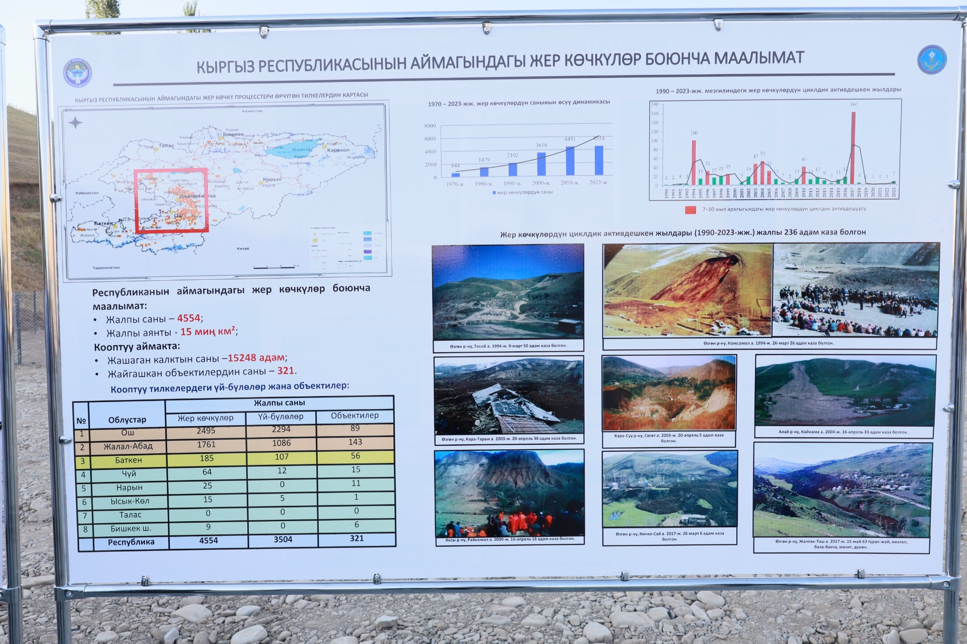 «По поручению президента страны, Министерством чрезвычайных ситуаций определены 46 участков, которые считаются потенциальными для схода оползней. Десять из них находятся в Узгене и включены в инженерный проект по противооползневой защите. Сегодня мы начнем запуск первого инженерного проекта по противооползневой защите. Всего на эти меры будет направлено 3,3 миллиарда сомов. Самое главное — проект был подготовлен на основе тщательного изучения природных физико-геологических условий и аналитических расчетов», — подчеркнул глава кабмина.
