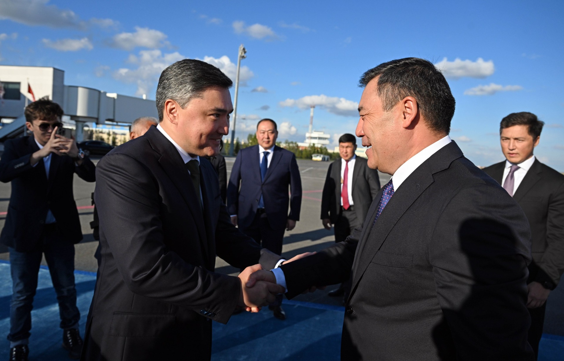 Президент Кыргызстана Садыр Жапаров прибыл с рабочим визитом в Астану. В международном аэропорту его встретили премьер-министр Казахстана Олжас Бектенов и другие официальные лица. Об этом сообщает пресс-служба главы государства.