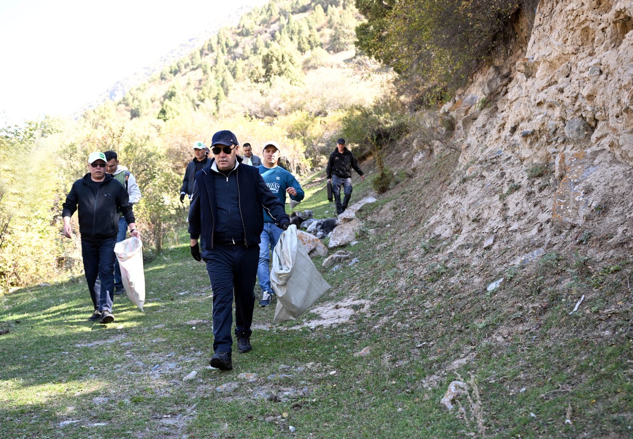 Президент вместе с руководством и сотрудниками администрации, управления делами главы государства сегодня вышел на субботник на территории лечебно-оздоровительного комплекса «Теплые ключи» в рамках Всемирного дня чистоты.